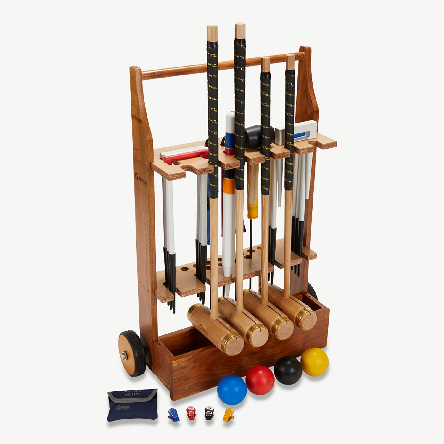 Holzern Croquet Rollwagen - Indien Hartholz - Krocket Trolley bis 6 Personen - Design in England